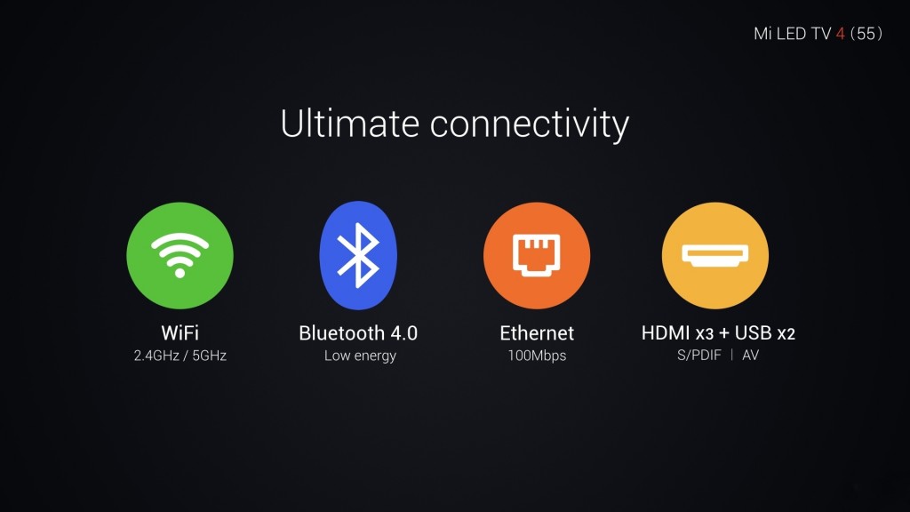 شیائومی با همکاری با شرکت هایی مانند Voot، Hungama Play و Sony Liv قول 500 هزار ساعت محتوای تلویزیونی داده است که تقریباً 80 درصد آنها رایگان خواهد بود. تلویزیون 55 اینچی شیائومی دارای اتصال بلوتوث 4.0 و وایفای 2.4 می باشد. 3 پورت HDMI و 2 پورت USB و یک پورت اترنت می باشد.(image)