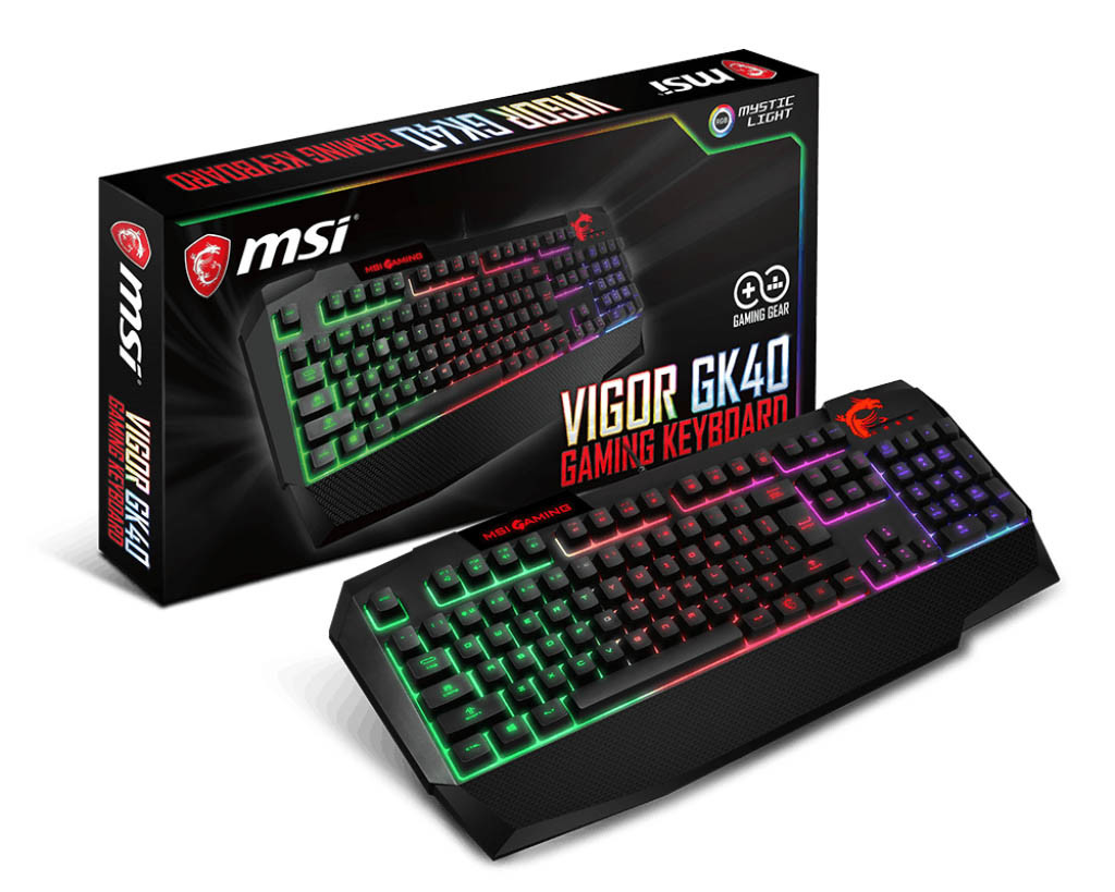 دومین محصول، کیبورد گیمینگ و مخصوص بازی این شرکت موسوم به Vigor GK40 است؛ Mystic Light RGB فناوری دیگری است که در این محصول به خدمت گرفته شده است. این محصول در ابعاد472 x 207 x 39 و وزن 1056 گرم، نشان های MSI و اژدهای رنگین MSI، ظاهر و ابعادی کاملا مناسب و جذاب را در اختیار شما قرار می دهد.