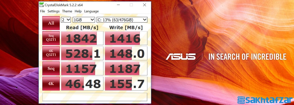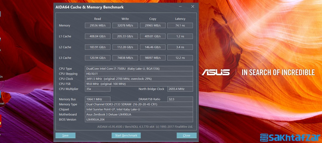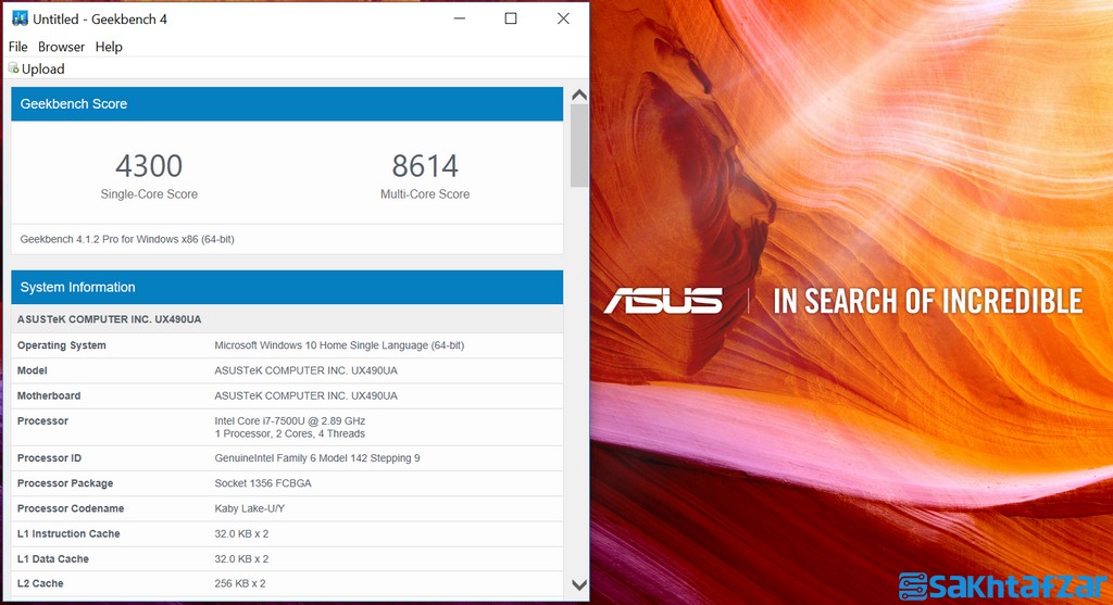 ترکیب این رم و پردازنده، قدرت پردازشی مناسبی را در اختیار کاربر این آلترابوک قرار می دهد که می تواند از پس قریب به اتفاق عملیات های اداری، و حتی Multi-Tasking های سنگین مانند باز کردن تعداد زیادی صفحه اینترنتی همزمان با تعداد زیادی فایل آفیس، برآید. تصویر فوق قدرت این سیستم را در تست Geekbench نمایش می دهد.