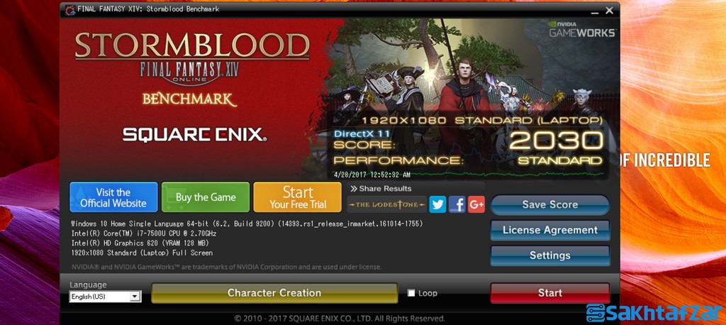 امتیاز فوق از تست بازی Final Fantasy XIV در حالت تنظیمات Standard و در دقت فول اچ دی حاصل شده است. اما بر کسی پوشیده نیست این لپ تاپ برای بازی ساخته نشده است.