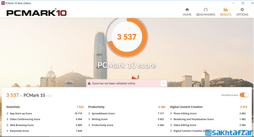 تست PCMARK 10 شامل طیف متنوعی از تست های کاری روزمره به همراه تست های سنگین کاربردی رندرینگ است. این برنامه امتیازات مشخصی را به هر بخش از یک سیستم اعطا می کند. همانطور که در تصویر مشخص است، نتیجه ی تست Essentials، شامل تست سرعت اجرای برنامه ها، ویدیو کنفرانس، و گشت و گذار در اینترنت نتیجه فوق العاده ای را رقم زده است. همچنین در بحث Productivity، شامل تست های اداری، از جمله صفحات محاسبانی، نوشتار و عملکرد Office نتیجه فوق العاده است. می توان گفت زنبوک از نظر توانایی اداری حتی از سیستم های قدرتمند گیمینگ هم امتیازی بالاتر گرفته است.