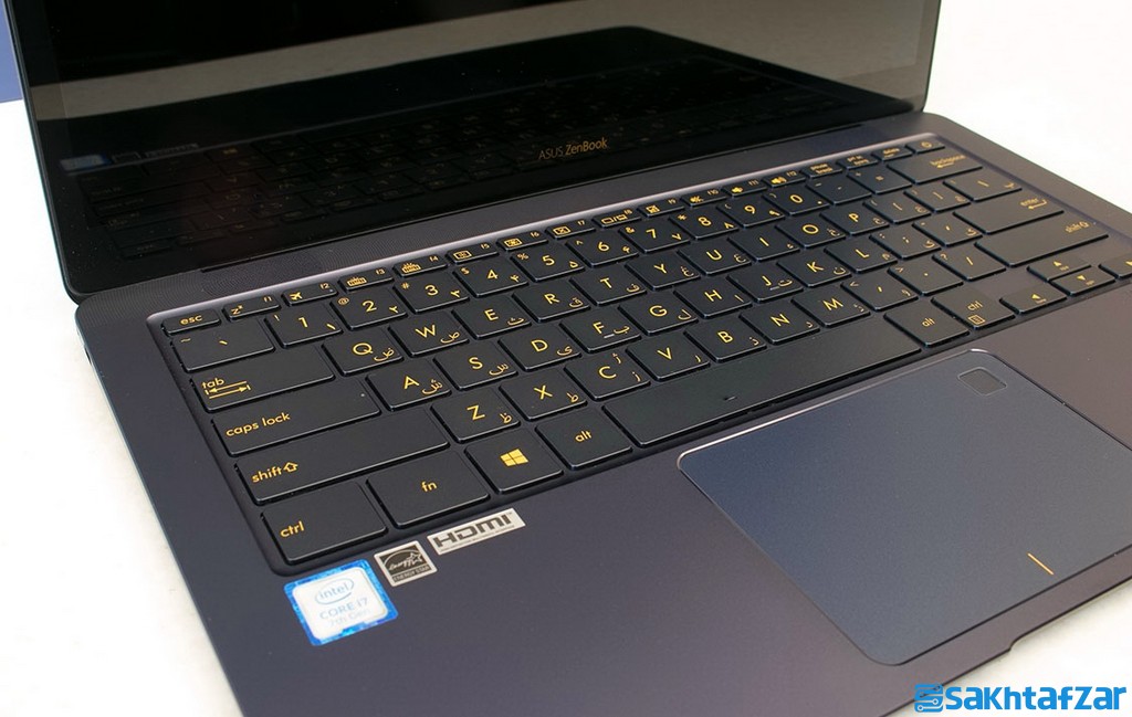 کیبرد جزیره ای ZenBook Deluxe 3 با دکمه های بزرگ طراحی شده است تا کاربر بتواند بدون خستگی ساعت ها با آن تایپ کند. میزان مسافت مورد نیاز برای عملکرد کلید ها 1.2 میلیمتر است و فرو رفتن کلیدها در هنگام تایپ همراه با حس فیدبک عملکرد آن است که می تواند بسیار به کاربر برای تایپ سریعتر کمک کند. کلید ها بسیار نرم و خوب طراحی شده است و خبر خوب اینکه، این کیبرد به پرینت زبان فارسی مزین است، بنابراین کاربران به هیچ وجه نگران تایپ فارسی نباشند چرا که کیبرد زنبوک مجهز به پرینت فارسی است.
